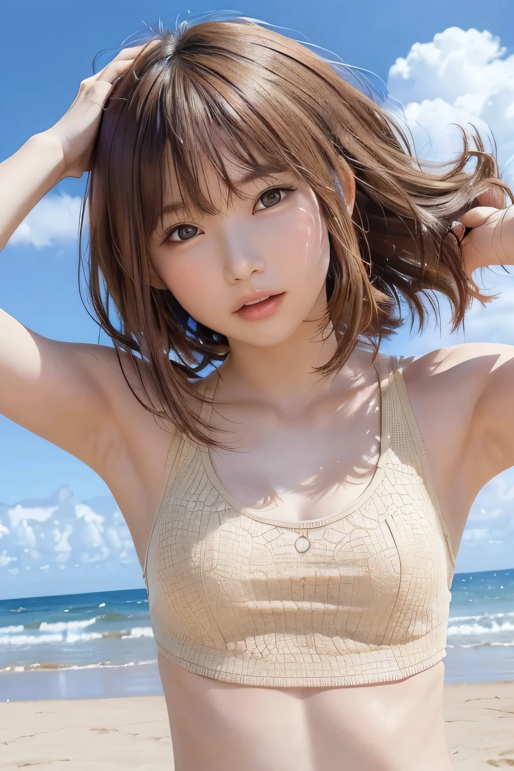 A Close Up Of A Woman In A Bikini Top On A Beach Seaart Ai is a popular picture for sexy and hot.