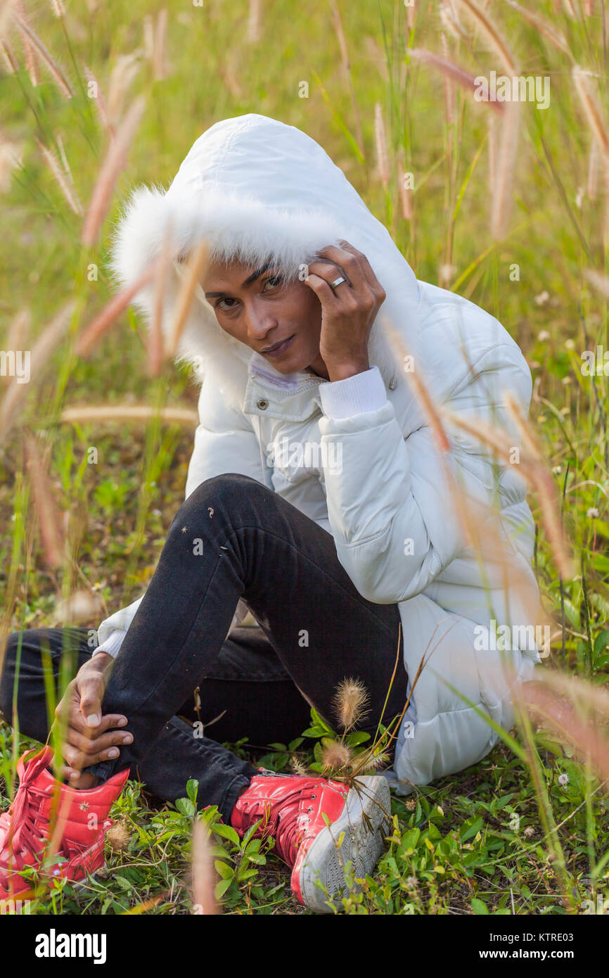 A Gay Wear Winter Clothes Walking In A Flowering Meadow In Winter The Weather Getting Cool is a popular picture for sexy and hot.