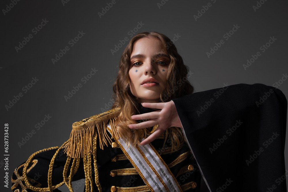 A Glamorous Blonde In A Carnival Uniform With Epaulettes Close Up Portrait In Anime Style Hero is a popular picture for sexy and hot.