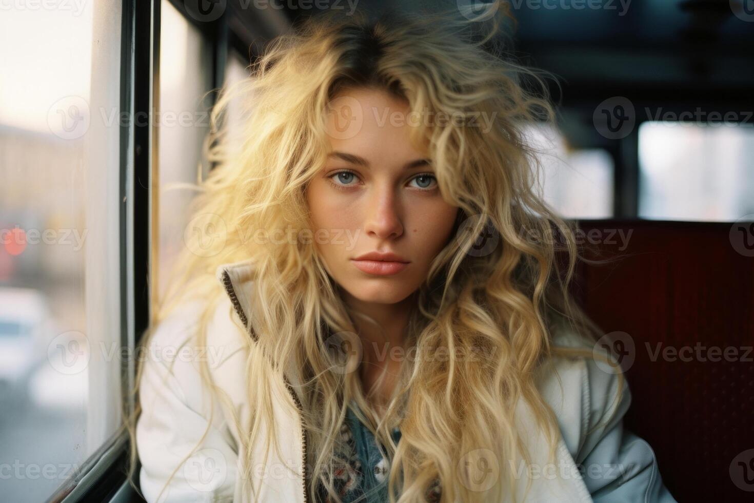 Related pictures for A Woman With Long Blonde Hair Sitting On A Bus Generative Ai Stock Photo At Vecteezy