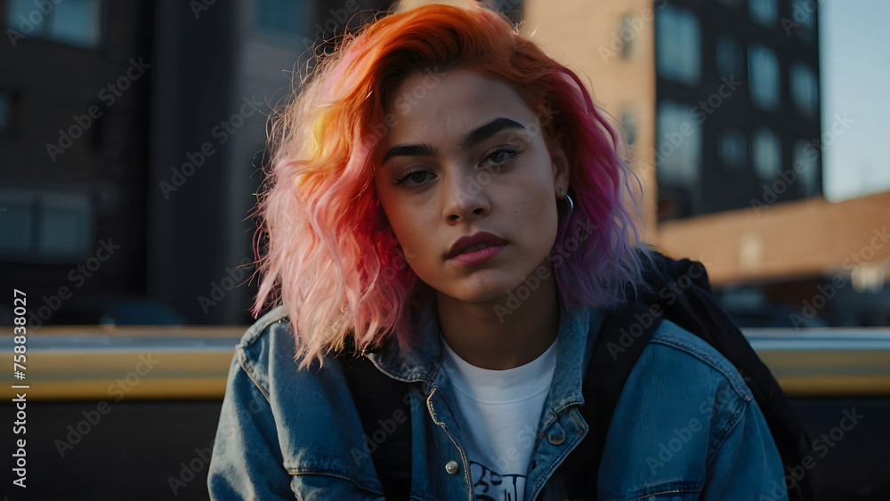 Tag : A Youthful Woman Participates In A Celebration Of Gay Pride Adorned With The Rainbow Flag Hair