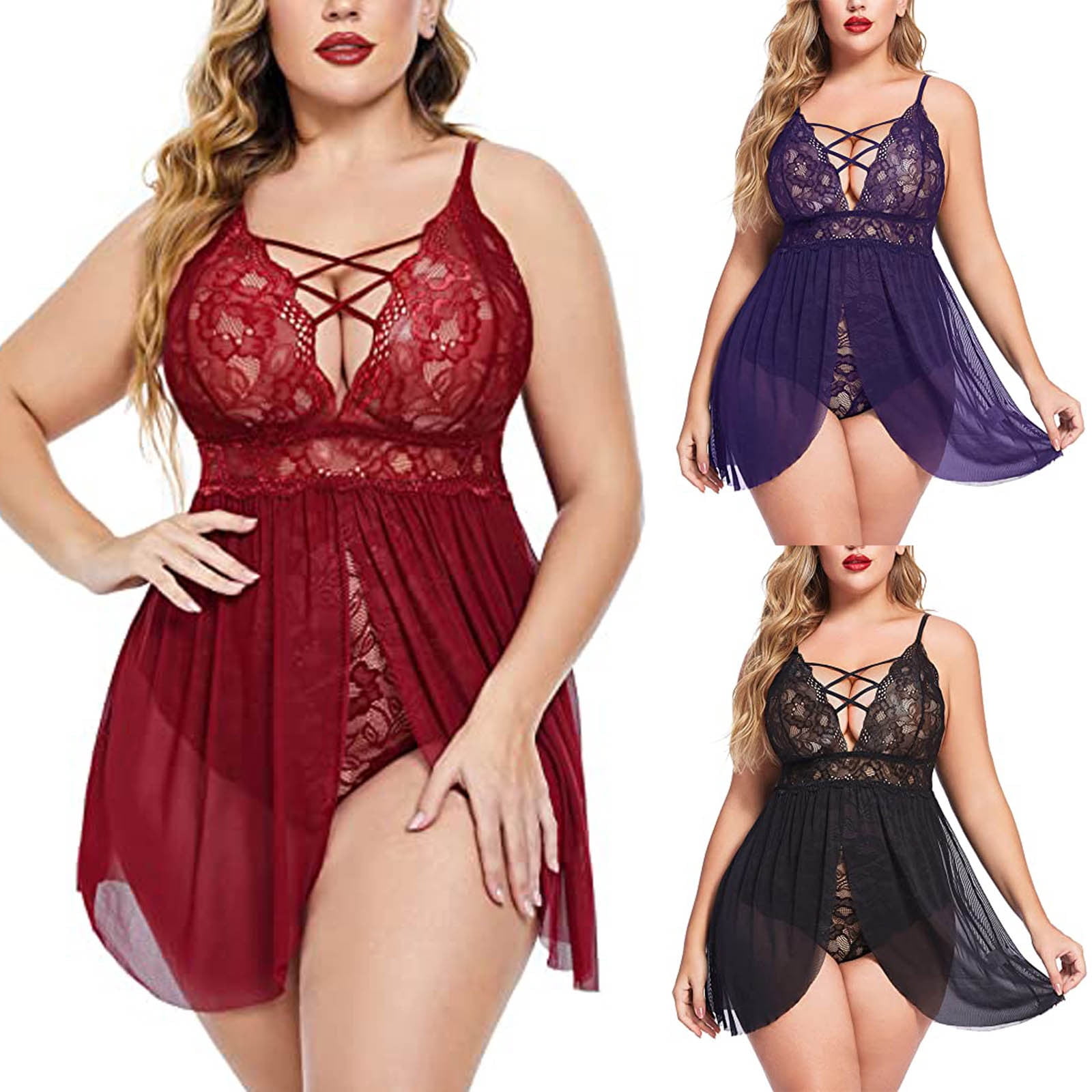 Tag : Aboser Strappy Lingerie For Women Nightgowns Plus Size Lace Negligee See Through Full Slip