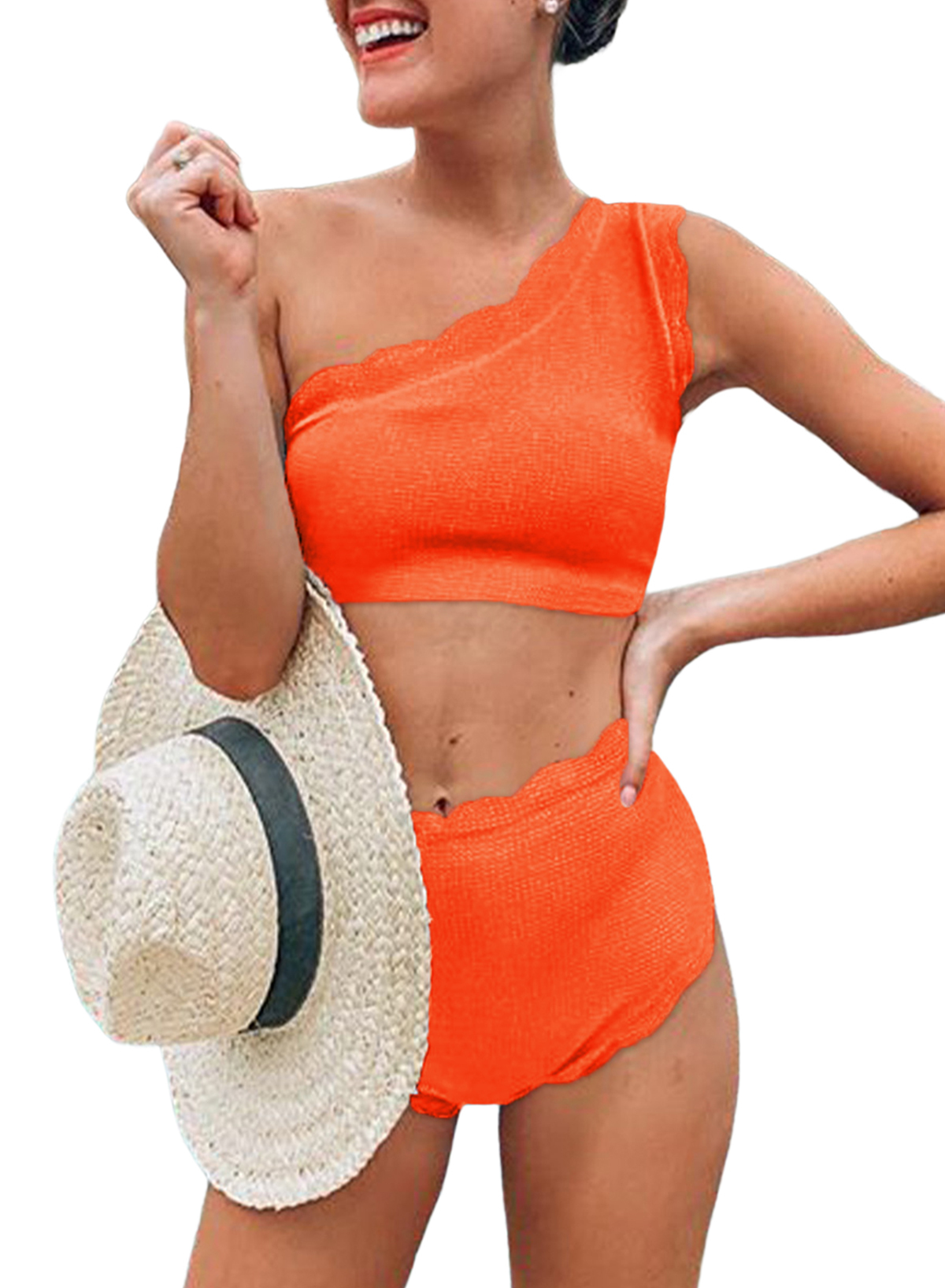 Tag : Acelitt One Shoulder Bikini Set For Women Scalloped Trim Swismuit High Waisted Two Piece Bathing