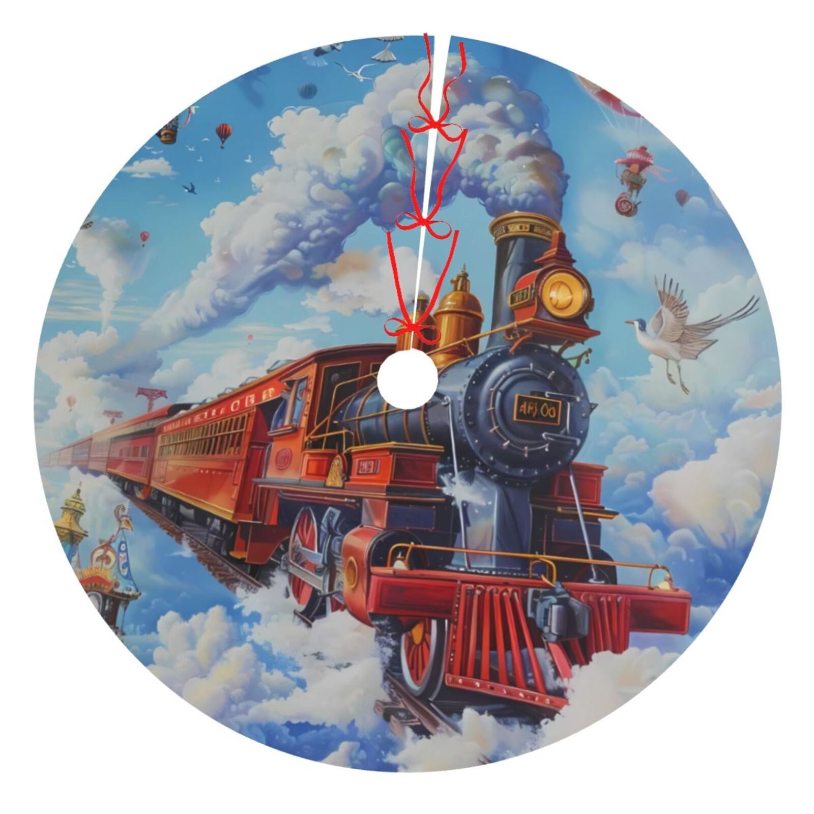 Adobk Cartoon Train Hot Air Balloon Print Christmas Tree Skirt Christmas Tree Decorations Let It is a popular picture for sexy and hot.
