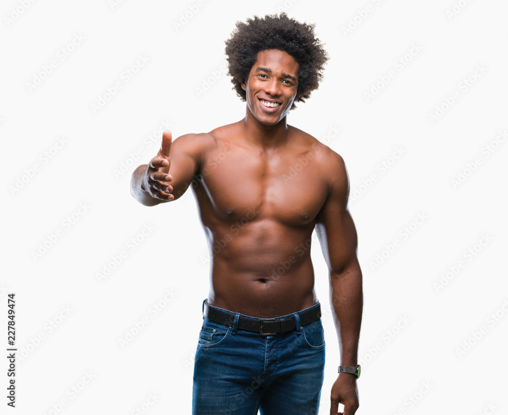 Afro American Shirtless Man Showing Nude Body Over Isolated Background Smiling Friendly Offering is a popular picture for sexy and hot.
