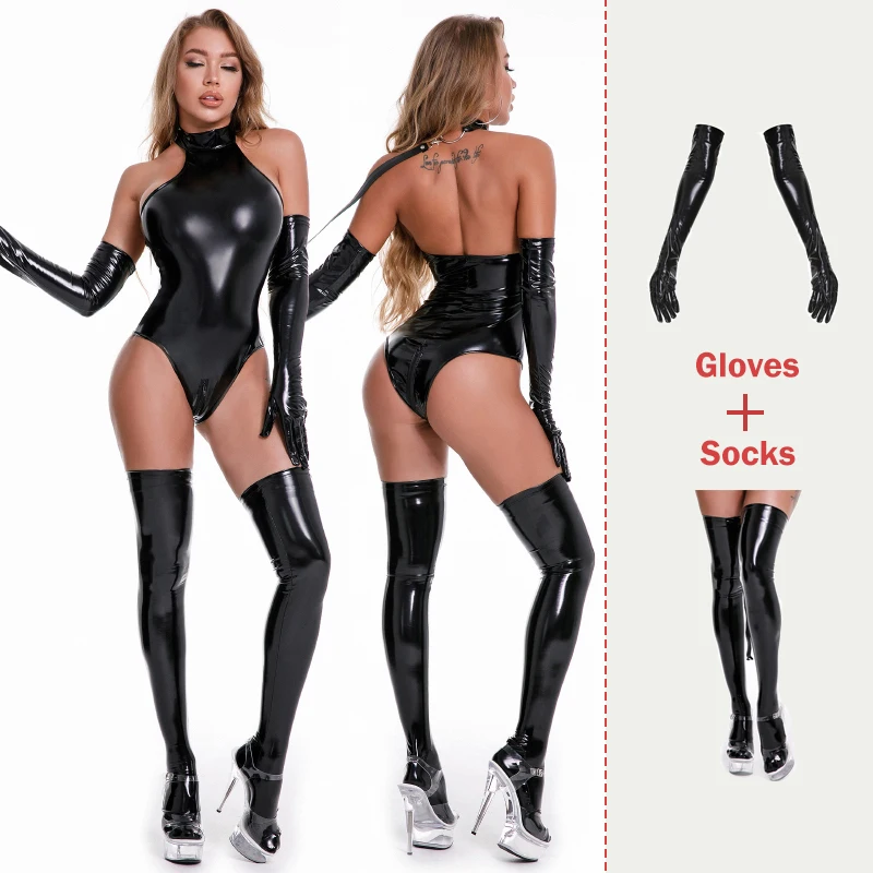 Aiiou Sexy Faux Leather Bondage Bodysuits Sexi Teddy Lingerie Women Erotic Bodysuit With Gloves is a popular picture for sexy and hot.