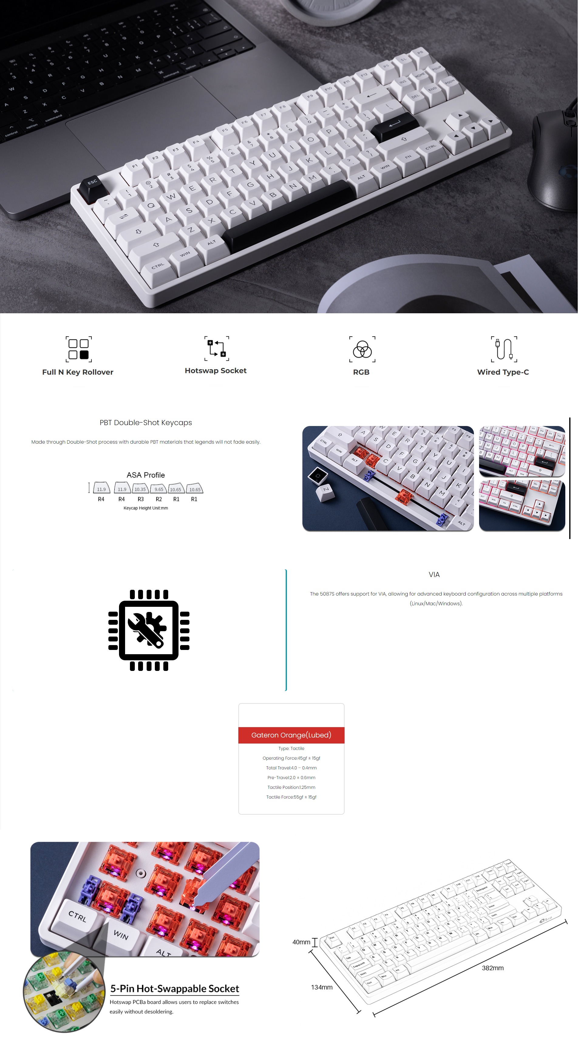 Tag : Akko S Via Rgb Hot Swappable Mechanical Keyboard Black On White Gateron Orange Lubed