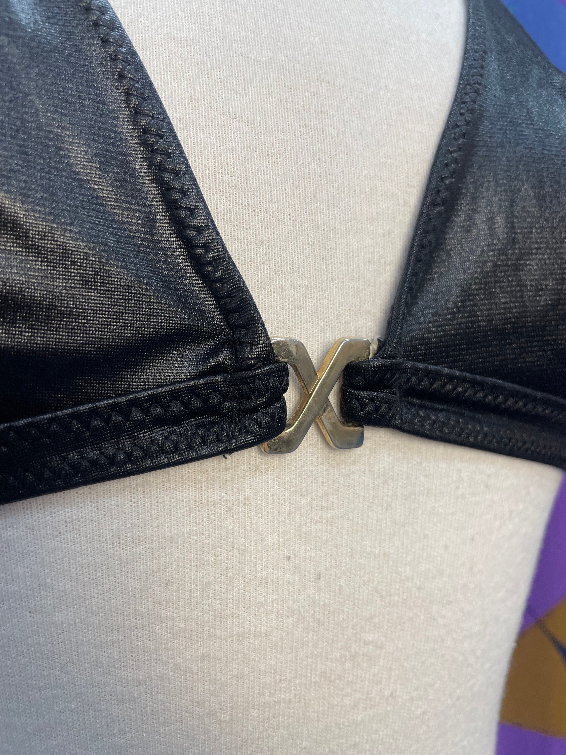 Tag : Amazing Vintage S Wet Look Triangle Halterneck Bikini Top And Matching Bottoms Shorts Set By