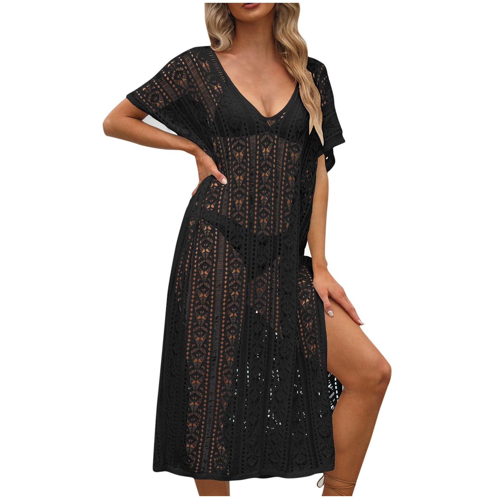 Ameiaea Women Crochet Bikini Swimsuit Cover Ups See Through Hollow Out Split Beach Dress is a popular picture for sexy and hot.