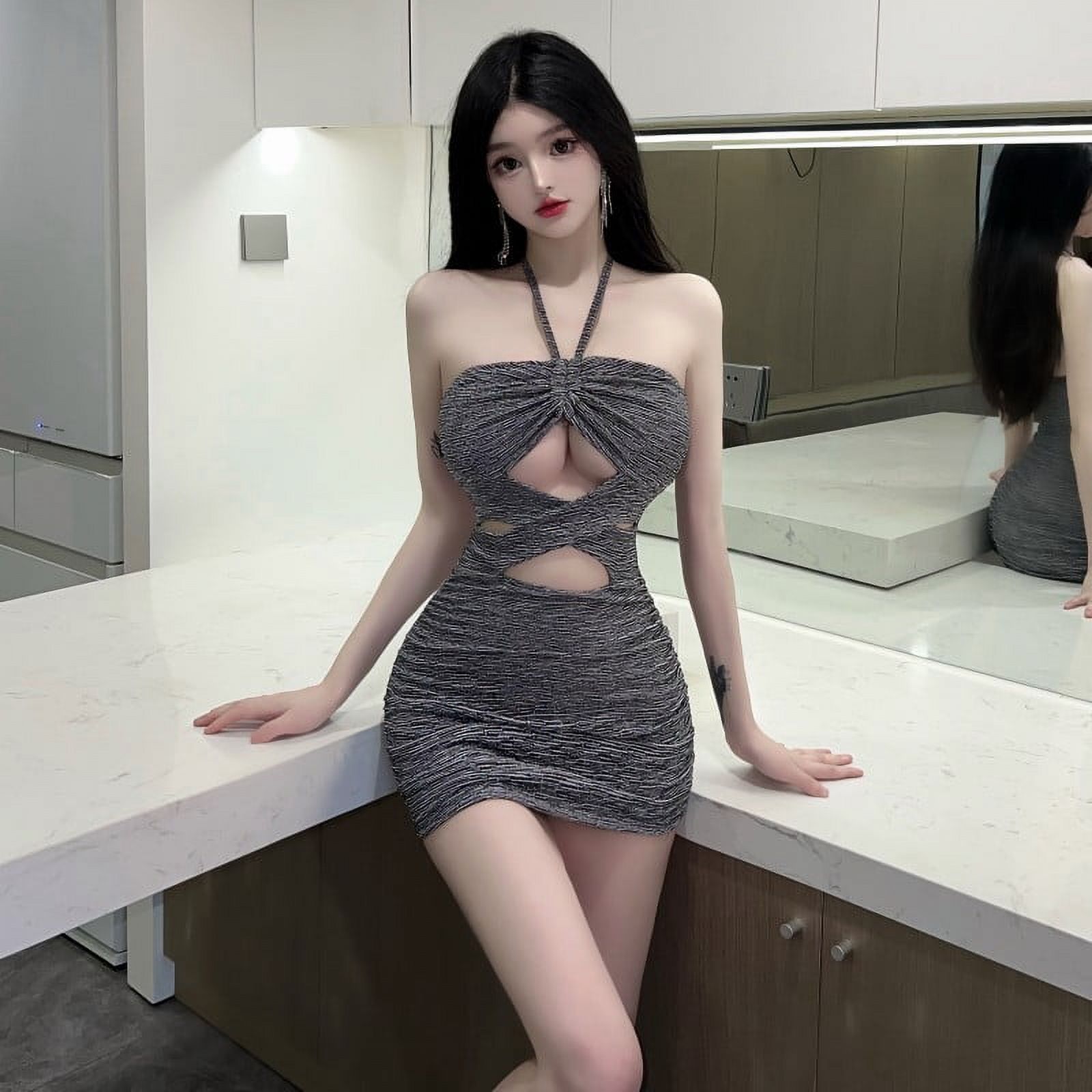 Anchor Same Style Hollow Out Halter Chest Wrapped Hot Girl Sexy Nightclub Bar Skirt Skinny is a popular picture for sexy and hot.