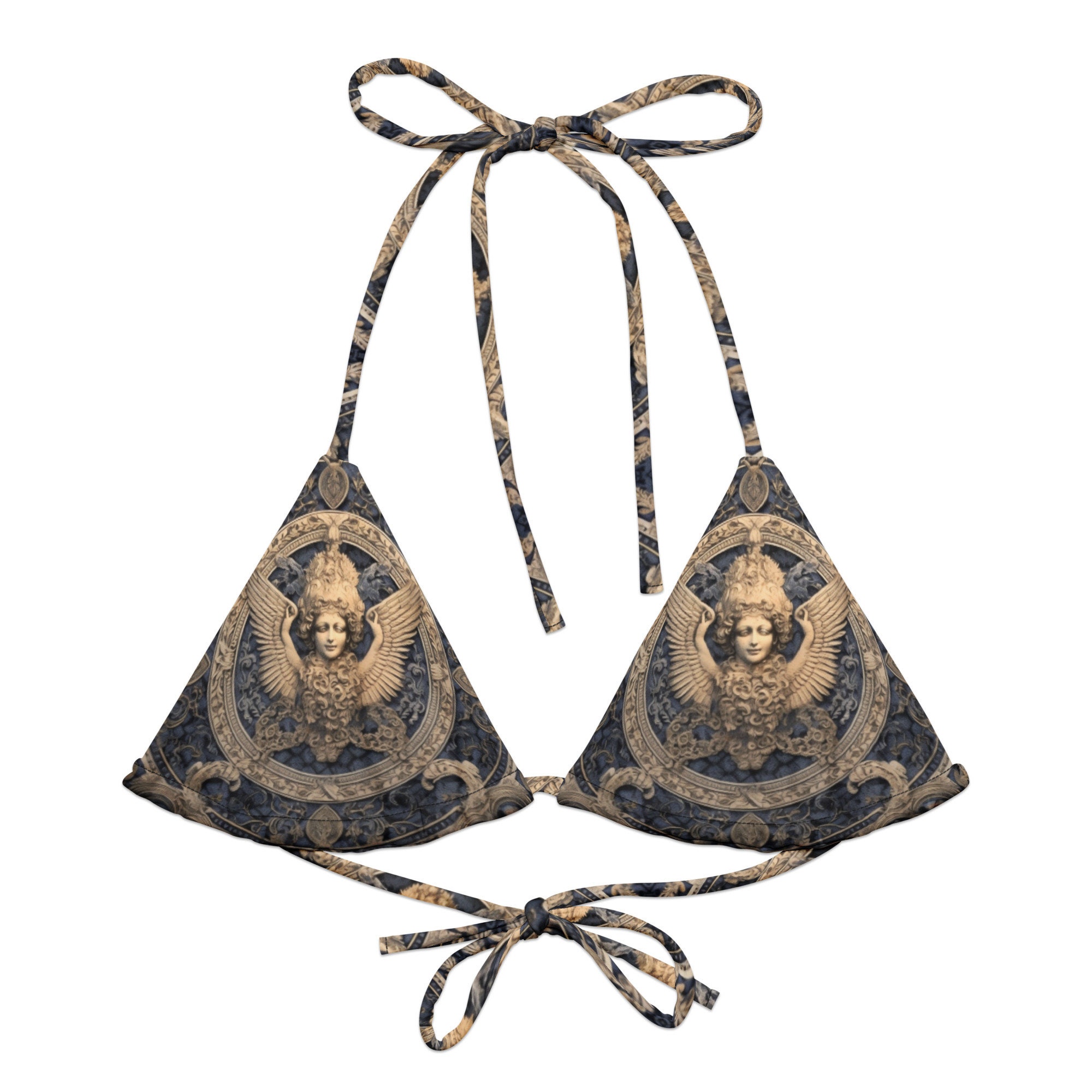 Angel Couture Rococo Baroque String Bikini Top Khaki Sand Blue Heavenly Ornate Swimwear is a popular picture for sexy and hot.