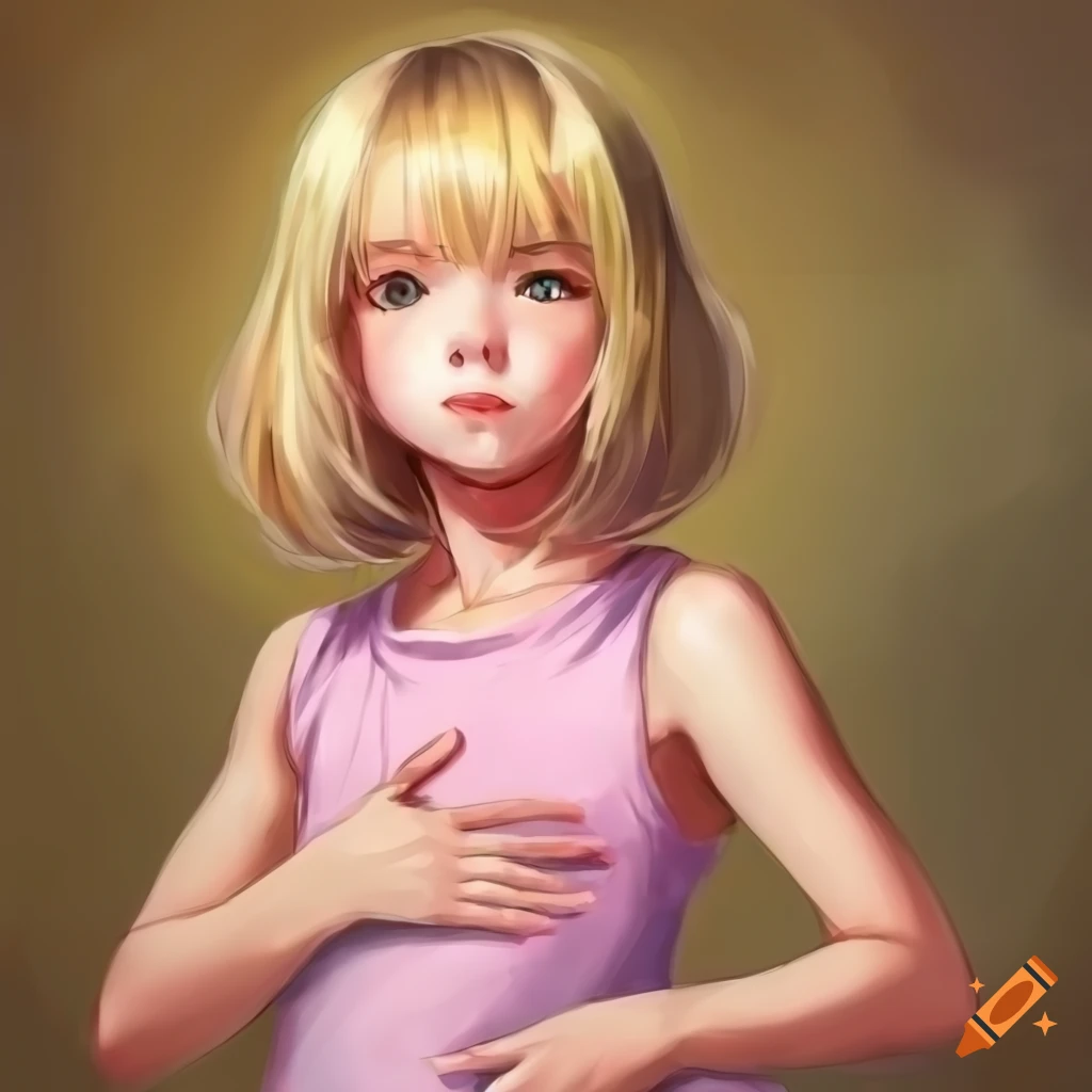 Anime Girl With Blonde Hair And Green Eyes In A Pink Sleeveless Shirt On Craiyon is a popular picture for sexy and hot.