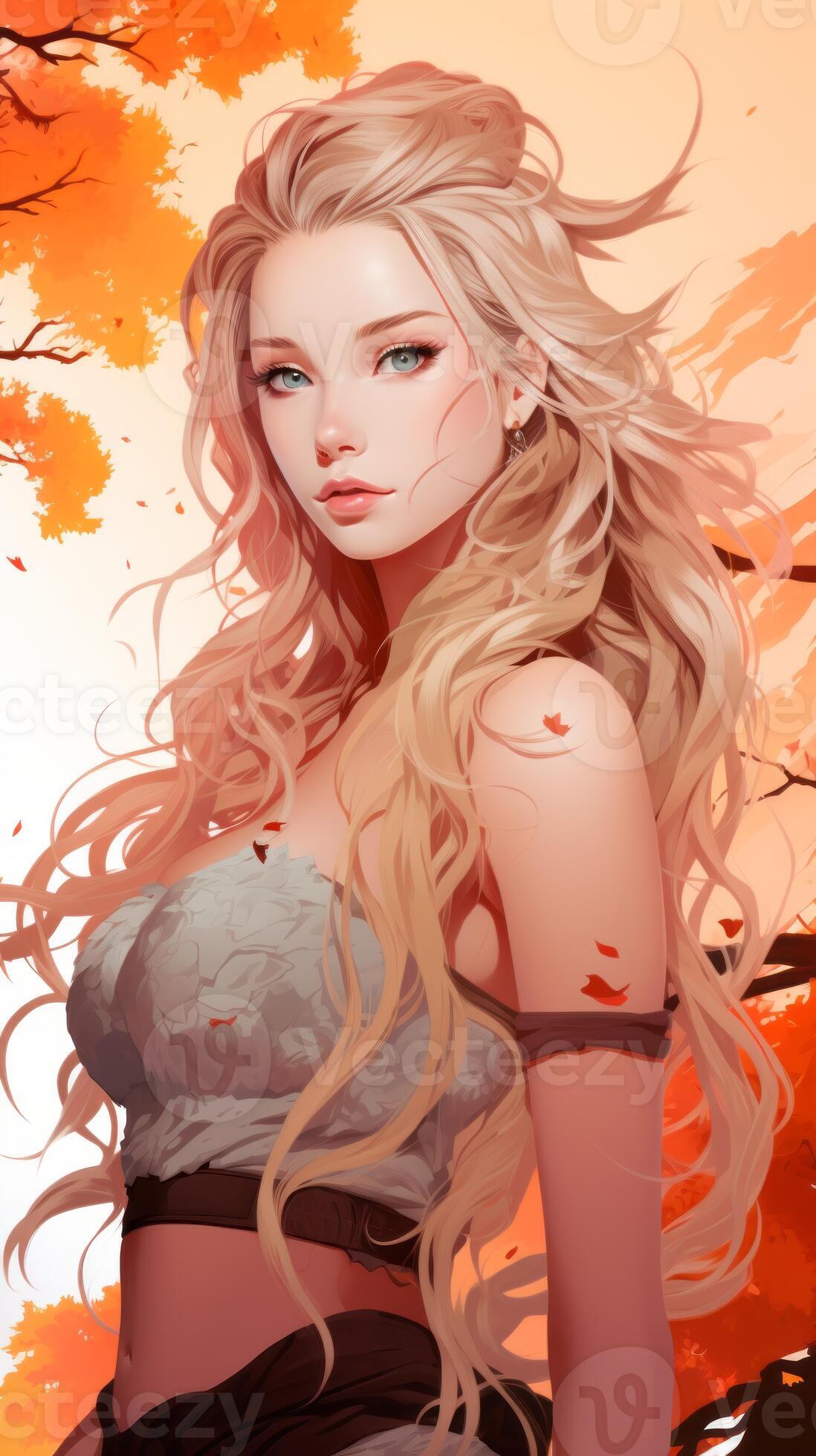 Tag : Anime Girl With Long Blonde Hair Standing In Front Of Autumn Trees Generative Ai Stock