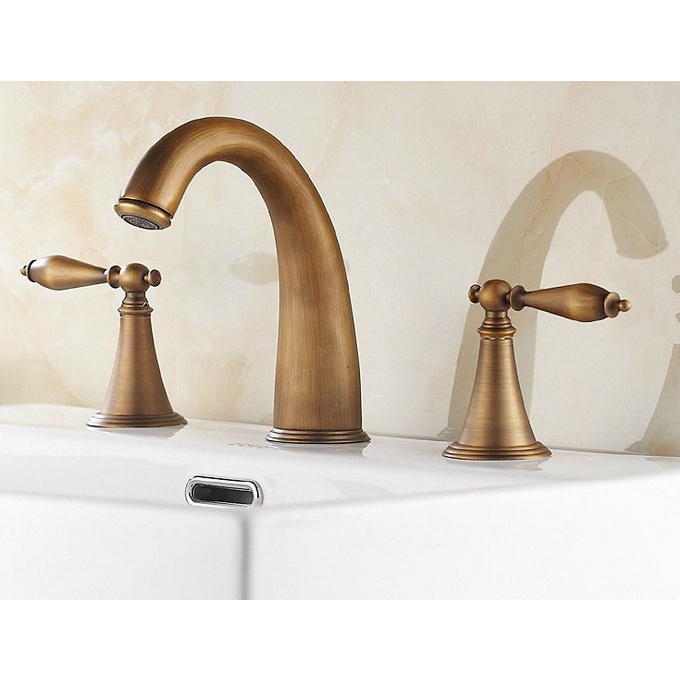 Tag : Antique Brass Hole Deck Mounted Basin Faucet Double Handle Bathroom Sink Hot And Cold Water
