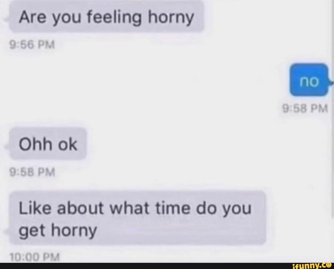 Are You Feeling Horny Pm Pm Ohh Ok Pm Like About What Time Do You Get Horny Pm Ifunny is a popular picture for sexy and hot.