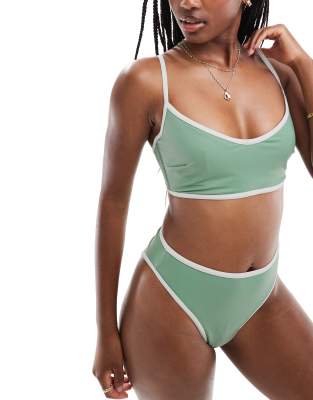 Tag : Asos Design Contrast Binding Hidden Underwire Crop Bikini In Sage Green Asos