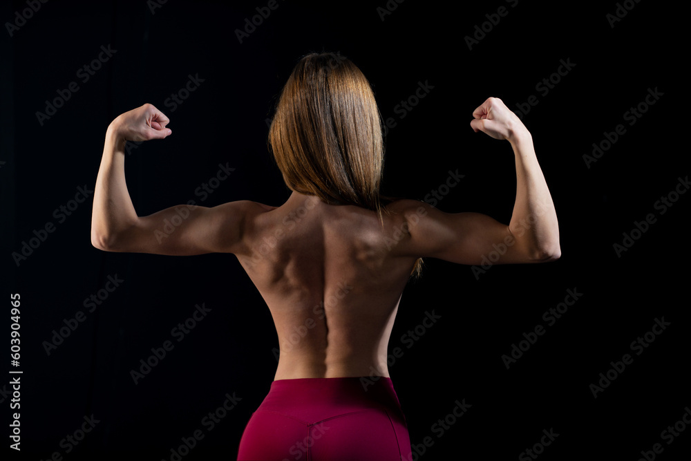 Athletic Fit Woman Pumping Up Muscles Back Woman Sport Strong Body Female Nude Muscular Back is a popular picture for sexy and hot.