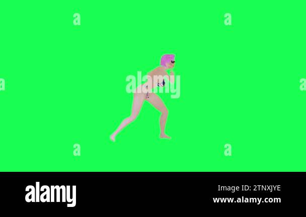 Attractive Pink Haired Woman In England Flag Bikini Dancing And Clapping Green Screen Isolated is a popular picture for sexy and hot.