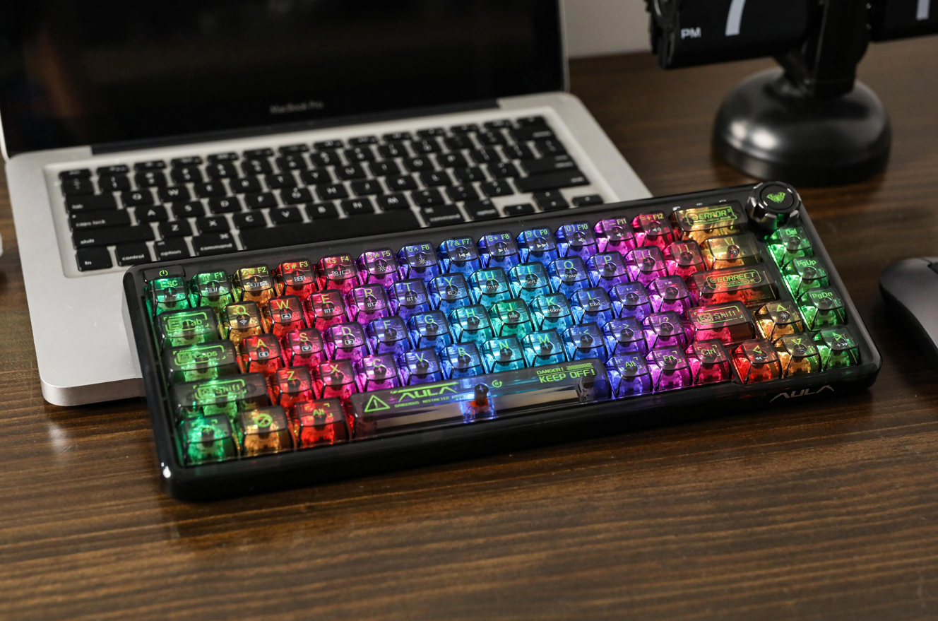 Aula F Transparent Wired Wireless Hot Swappable Mechanical Keyboard Black Purple Blue 240975