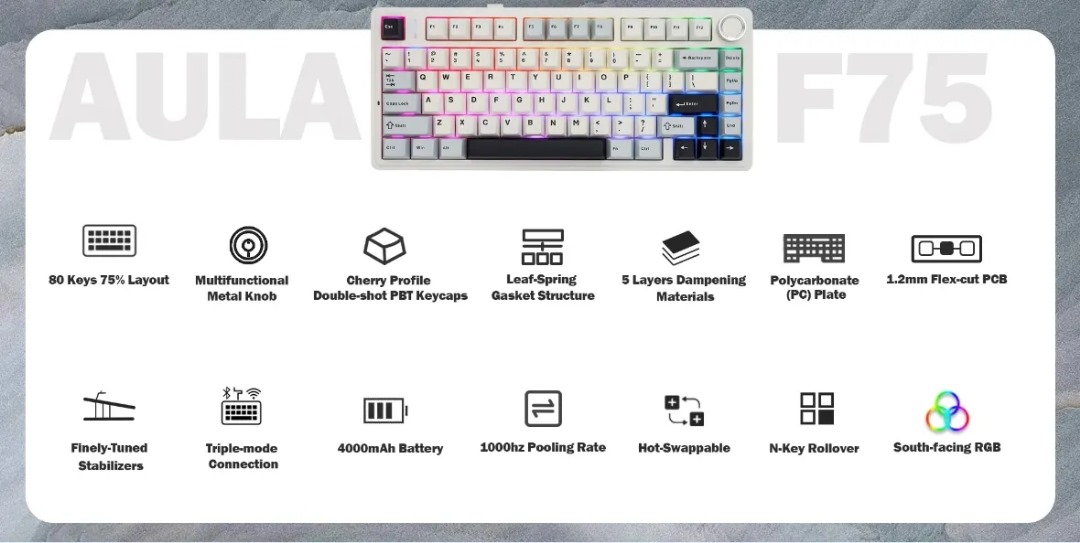 Aula F Wireless Mechanical Keyboard Keys Rgb Mode G Bt Wired Gasket Structure Hot 127170