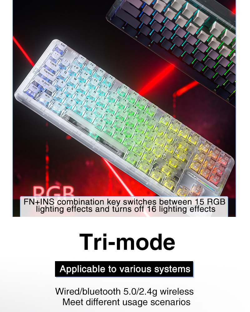 Tag : Aula L Tri Mode Customized Mechanical Keyboard Rgb Hot Swap Transparent Shell Supports Driver