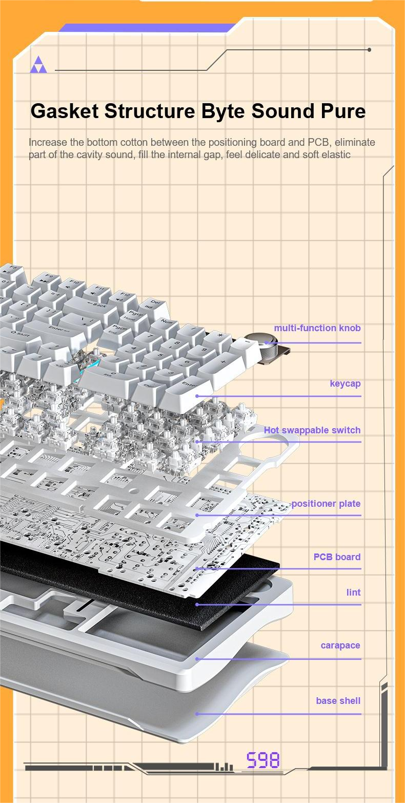 Aula S Mode Mechanical Keyboard With Knob Hot Swap Custom Gasket Bluetooth Gaming Keyboard 226080