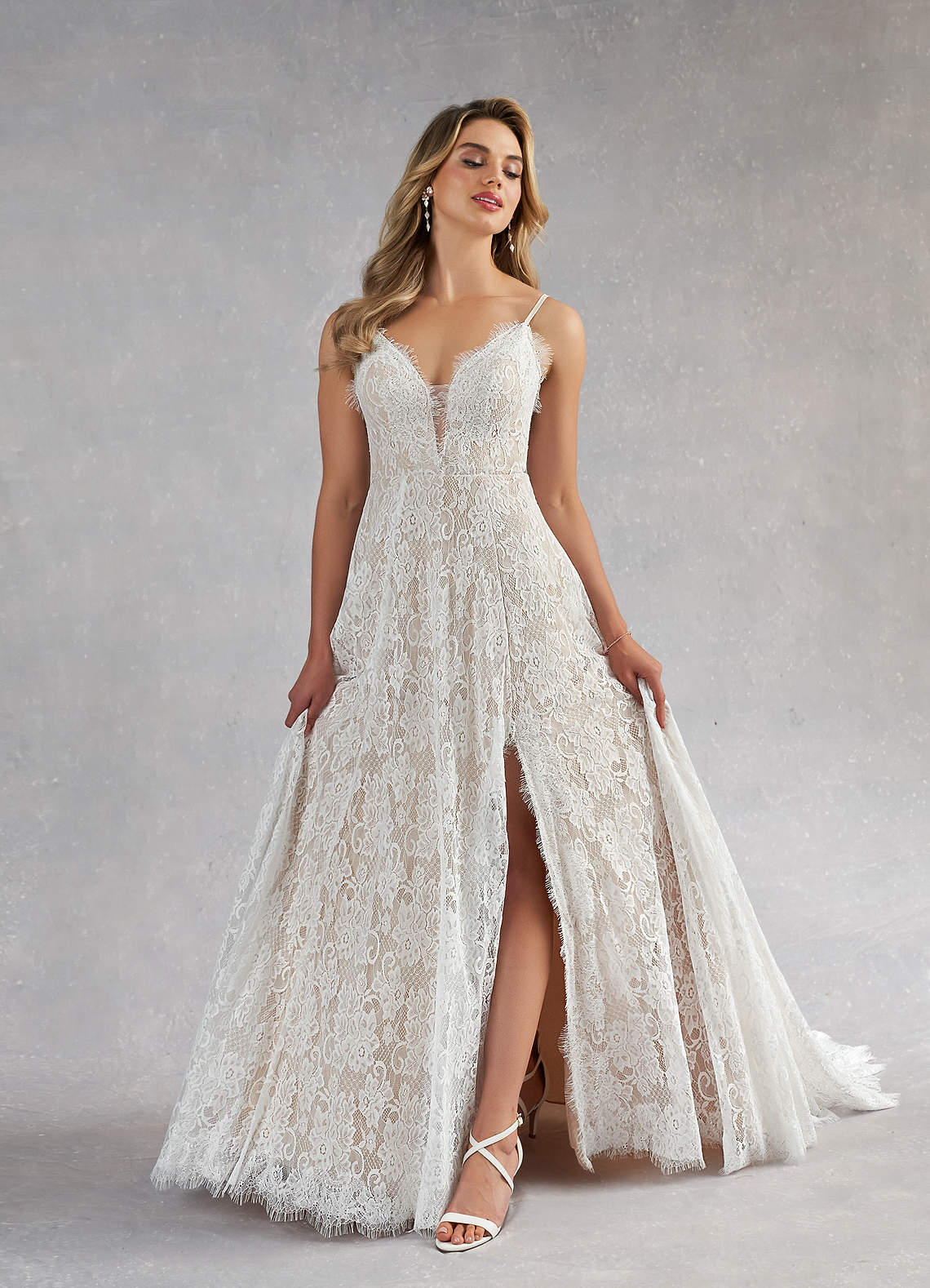 Tag : Azazie James Diamond White Nude A Line V Neck Lace Dress Azazie