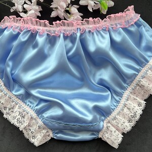 Baby Blue Satin Panties Bikini Style Silky Soft Sissy Knickers Daisy Detail Made To Order is a popular picture for sexy and hot.
