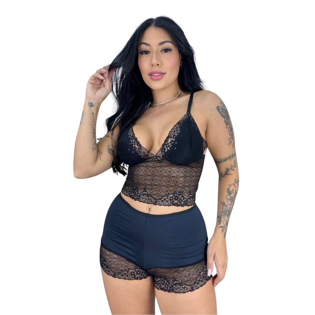 Baby Doll Feminino Renda Pijama Dormir Noite Short Curto Cropped Renda Sem Bojo Lingerie is a popular picture for sexy and hot.