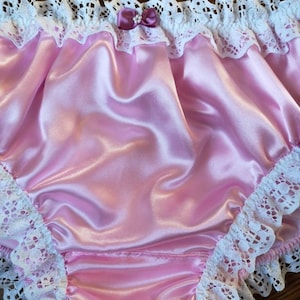 Baby Pink Bikini Panties Slippery Satin Sissy Knickers Frilly Bum Ruffle Made To Order is a popular picture for sexy and hot.