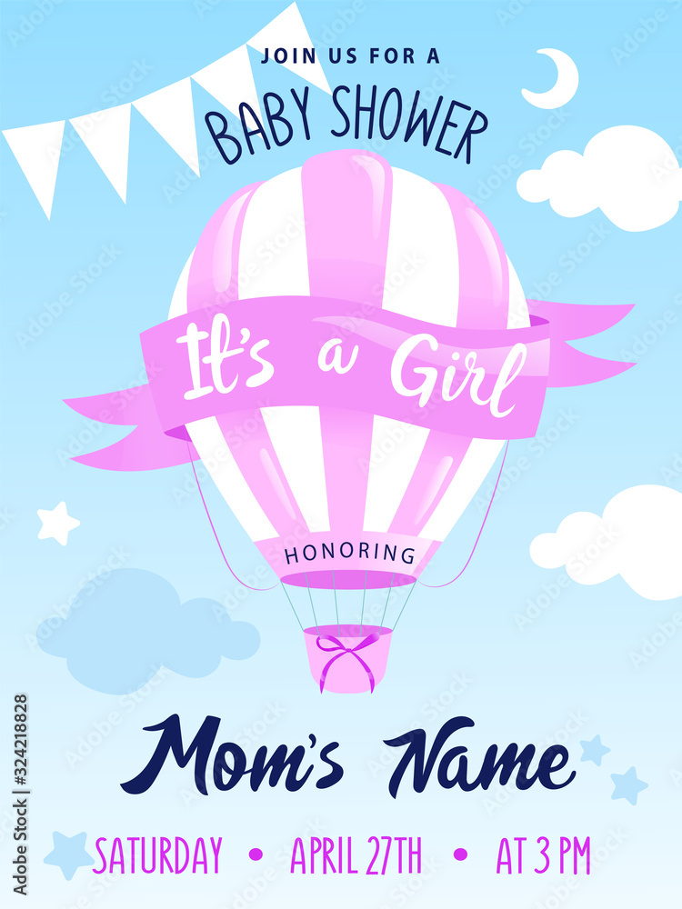 Baby Shower Concept Hot Air Balloon With Decorations And Place For Text Girl Baby Shower Or 156975
