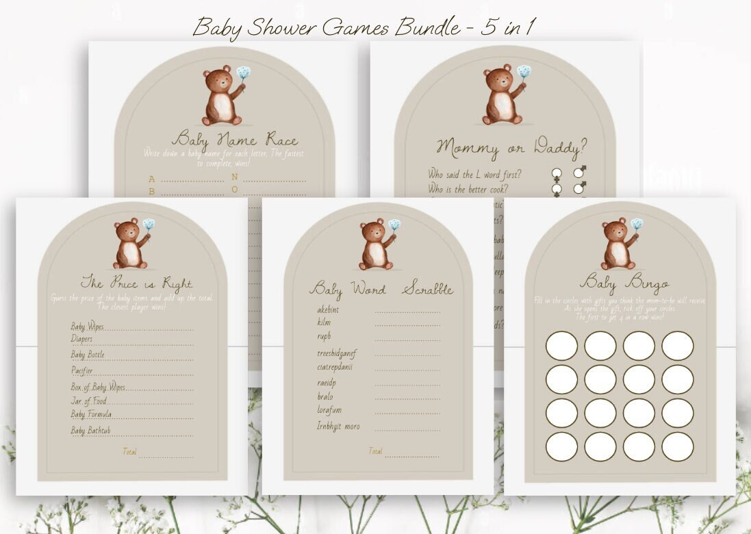 Tag : Baby Shower Games Bundle Nude Teddy Bear Theme Minimalistic Etsy
