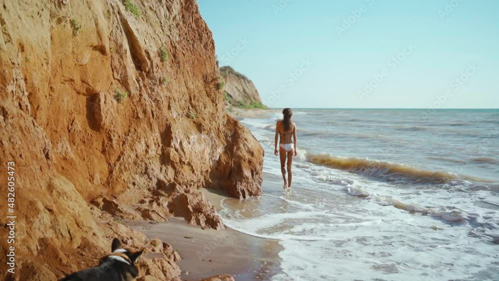 Back View Slow Motion Footage Of Sexy Fitness Girl In Bikini Walking Along Sand Sea Beach With is a popular picture for sexy and hot.