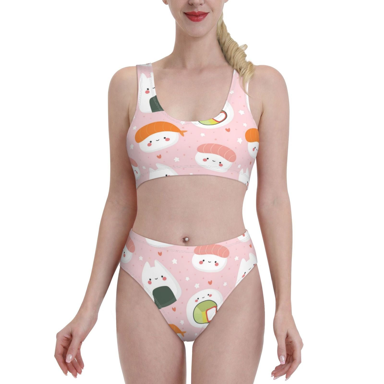 Balery Cute Sushi Women Bikini Swimsuit Tankini Set Piece Bathing Suit Scoop Neck Swimsuit is a popular picture for sexy and hot.