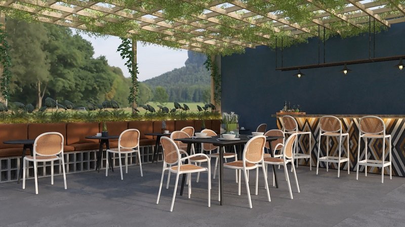 Banqueta Positano Em Polipropileno Encosto E Assento Textura Rattan Nude