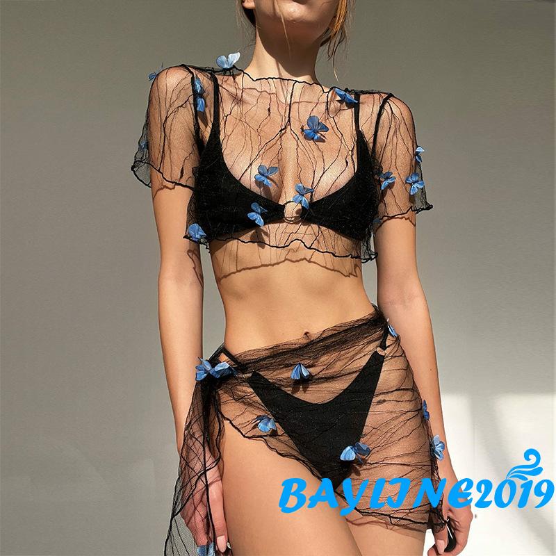 Bay N Bikini Che Ph B L I Sheer Ba Chi U B M Trang Tr Tay Ng N Crop Tops Bu C Sarong B C is a popular picture for sexy and hot.