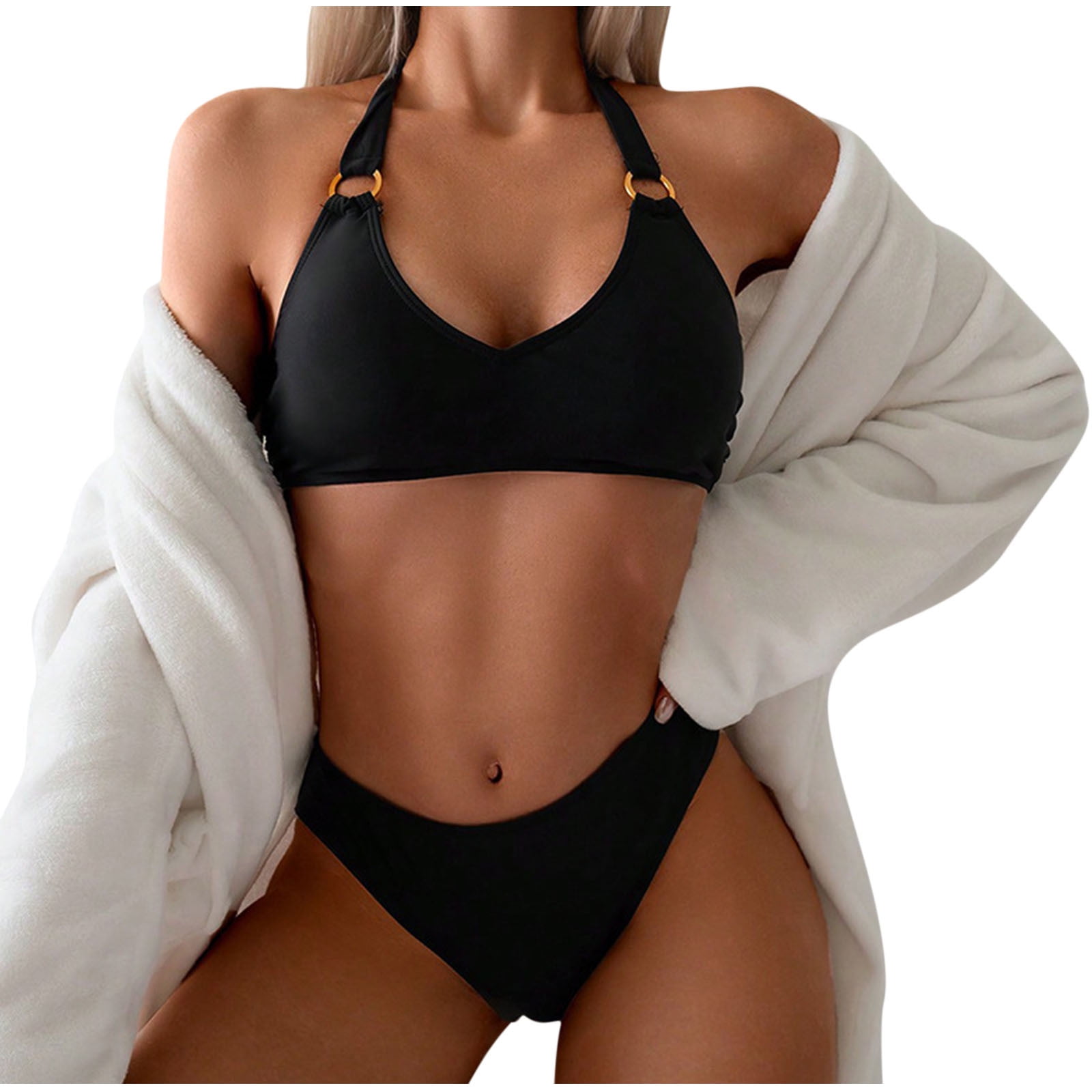 Beai Womens Swimsuit With Sleeves Black Halter Bikini Sets For Women Trendy Swimwear Beach is a popular picture for sexy and hot.