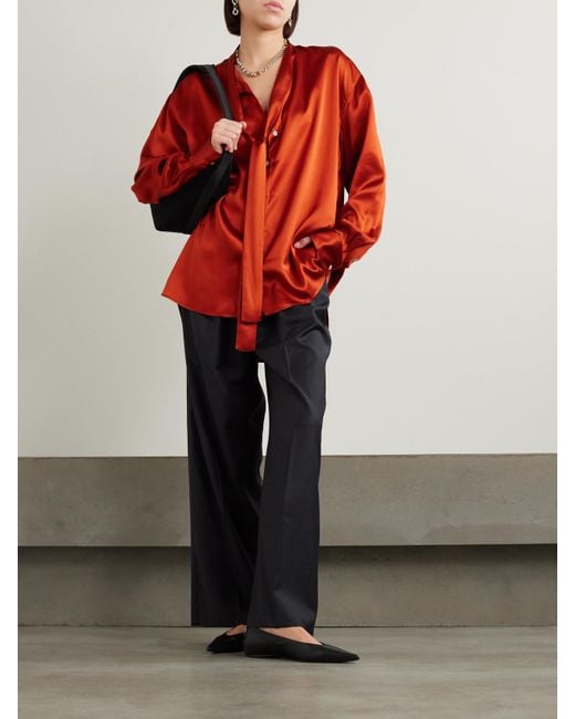 Tag : Beare Park Oversized Pussy Bow Silk Satin Blouse In Orange Lyst