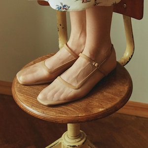 Beige Mesh Mary Janes With Square Closed Toe And Leather Insole Sheer Nude Fishnet Flat Ballet is a popular picture for sexy and hot.