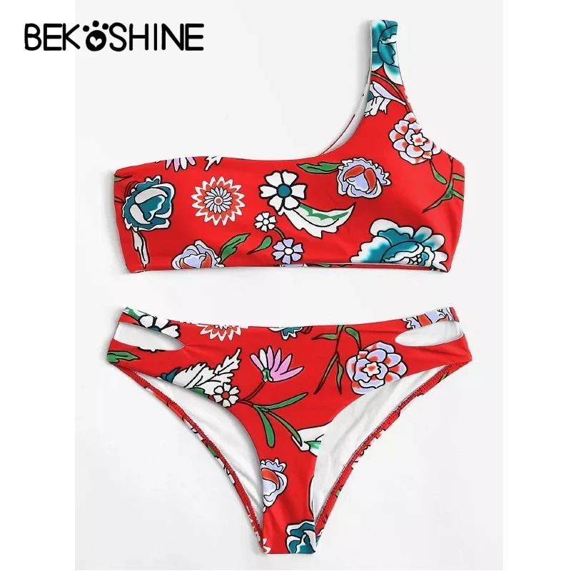 Tag : Bekoshine Vermelho Swimwear Push Up Mai Biquini Flores Swimsuit Bikini Set Mulheres