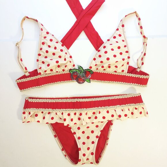 Tag : Betsey Johnson Swim Betsey Johnson Vintage Bikini Red Polka Dot W Cherry On Top Pieces