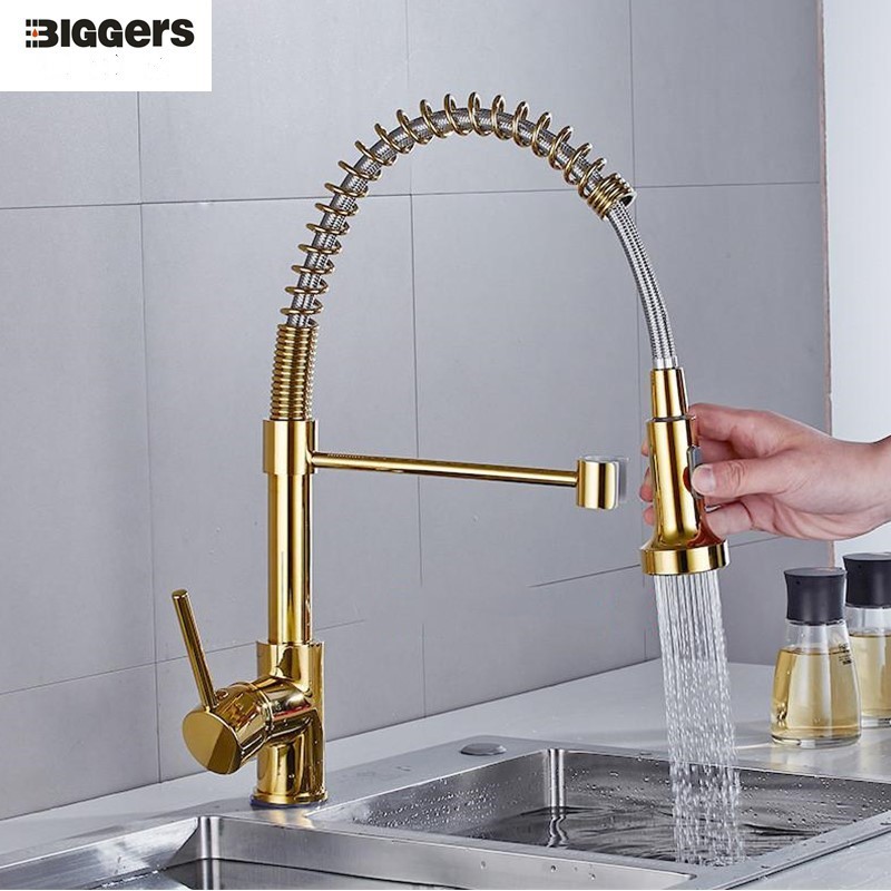 Tag : Biggers Gold Color Brass Pull Out Kitchen Faucet Cold Hot Water Mixer With Pipes Shopee
