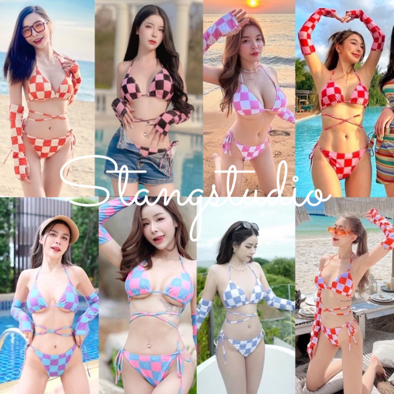 bikini ลายตาราง พรอมปอกแขน ผาวายนำ มฟองนำ ซบในทงตว พรอมสง brand stang studio is a popular picture for sexy and hot.