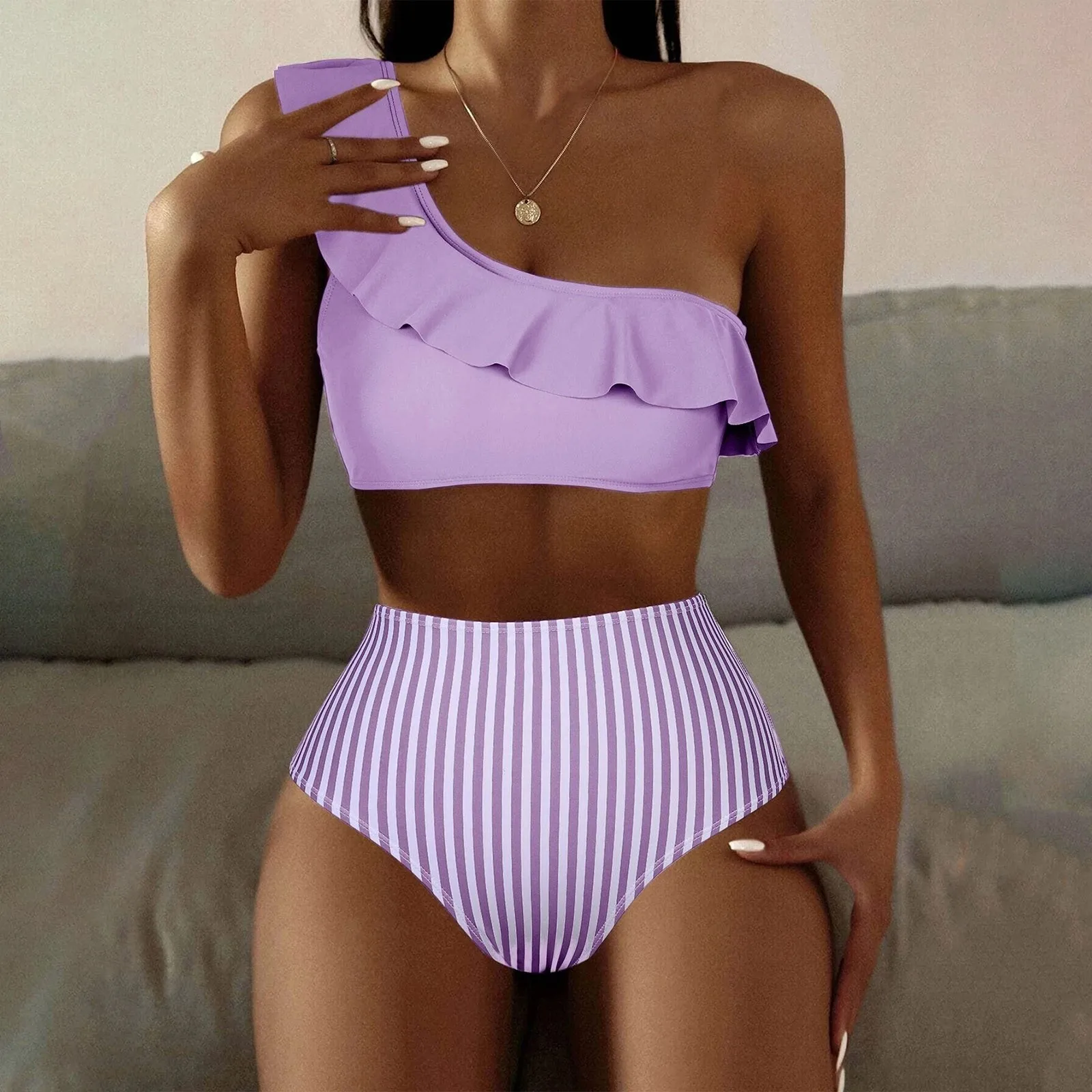 Tag : Bikini Con Volantes A Rayas Para Mujer Ba Ador Sexy De Un Hombro Con Volantes Traje