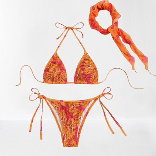 Bikini Set Orange Floral Bikini Triangle Bikini Adjustable Bikini Beachwear Three Piece pictures has 500 x 400 · 50 kB · jpeg.