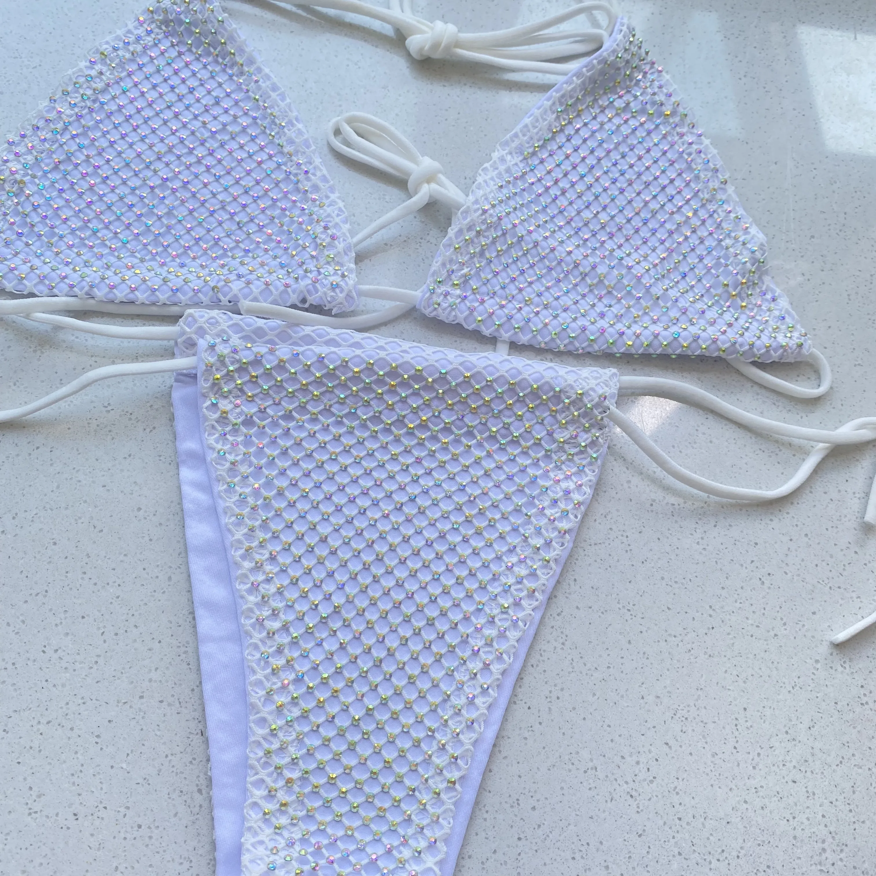 Tag : Bikini Set Women Luxury Bling Rhinestone Pink White Crystal Diamond Sexy Swimsuit Halter Push Up