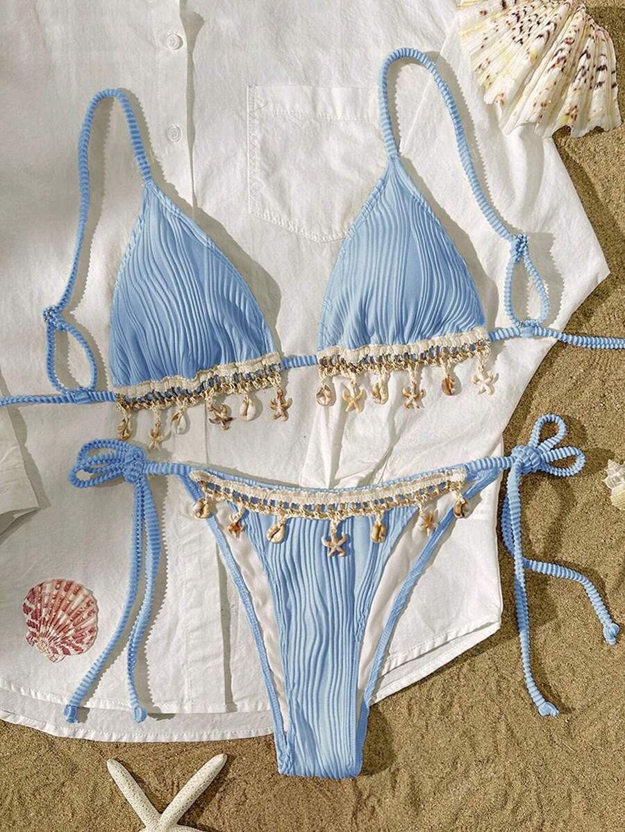 Tag : Bikinx Women S Solid Color Textured Fabric Shell Webbing Triangle Cup Bikini Set For Beach