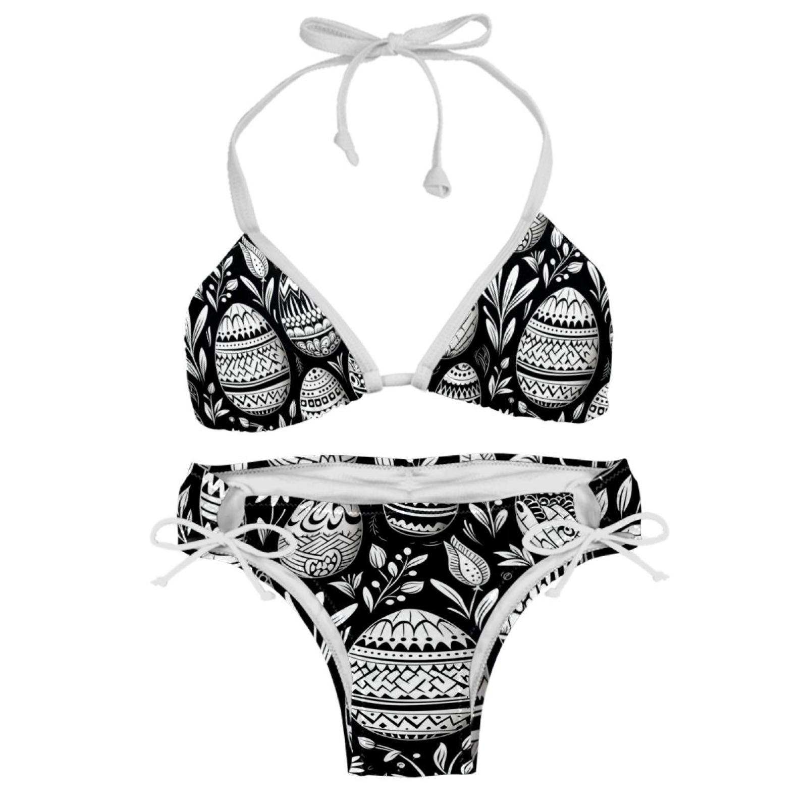 Black And White Easter Women S Detachable Sponge Adjustable Strap Bikini Set Pack For Beach is a popular picture for sexy and hot.