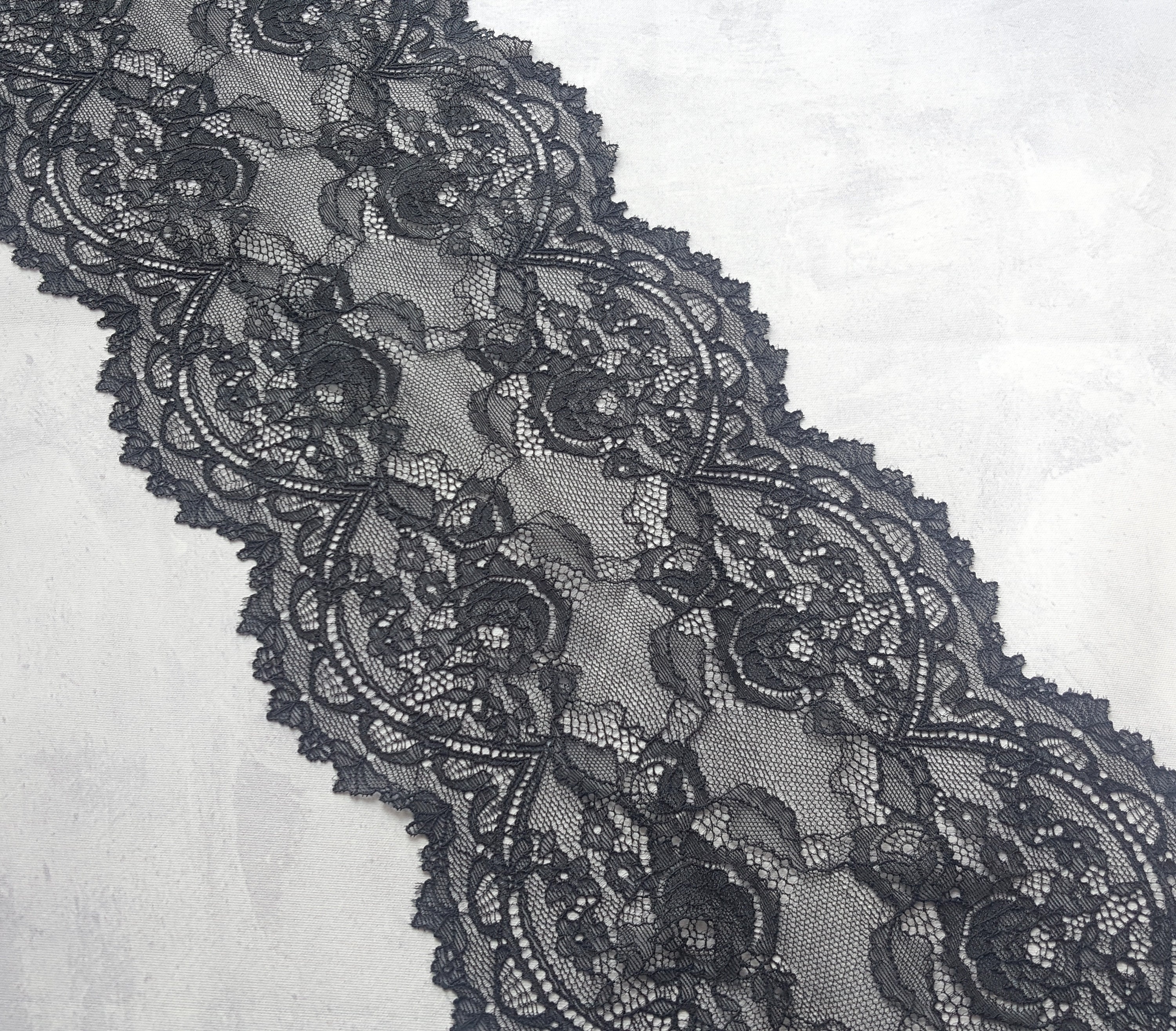 Black Floral Stretch Lace Trim Wide Elastic Lace Fabric Lingerie Sewing Width Cm 163200