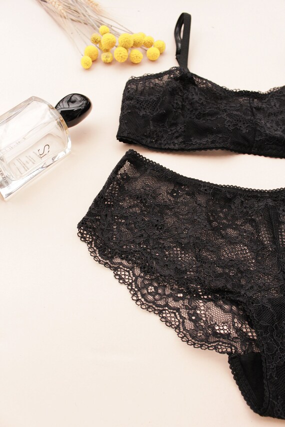 Black Lace Lingerie Set Black Floral Lace Bralette Panties Etsy is a popular picture for sexy and hot.